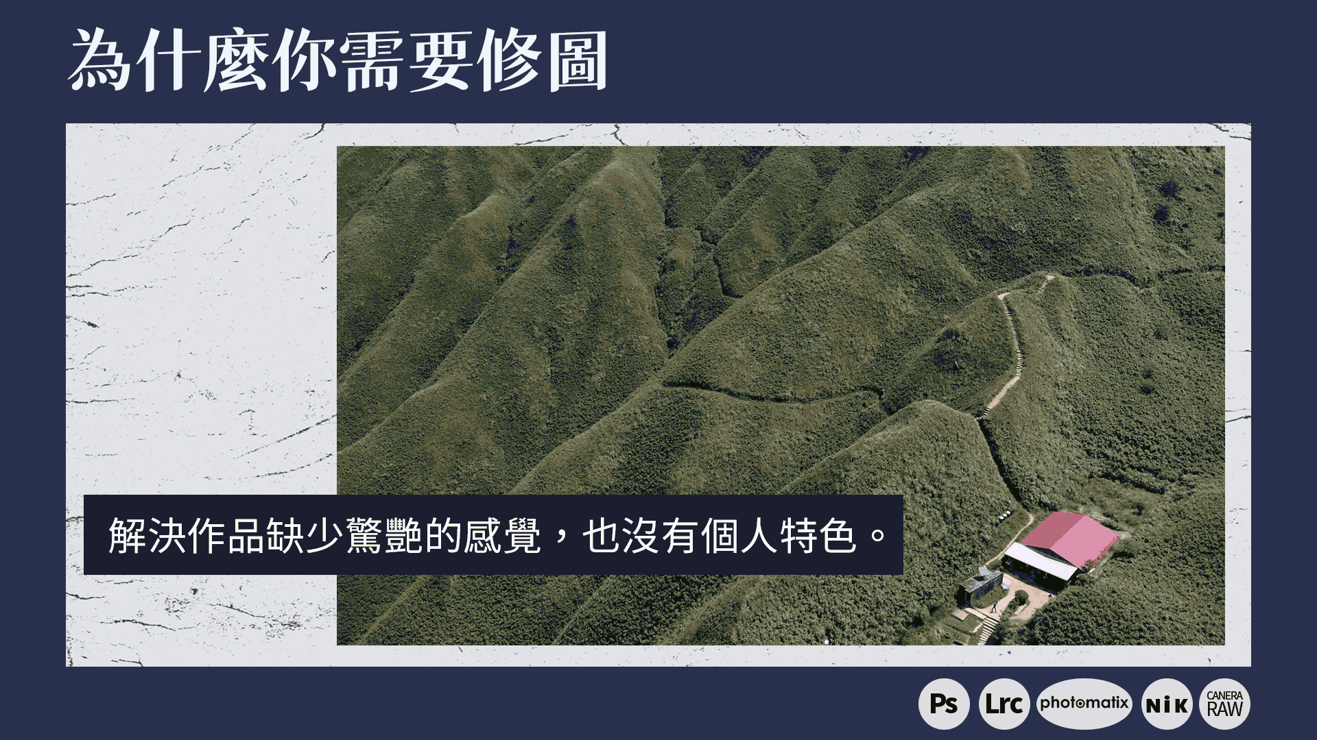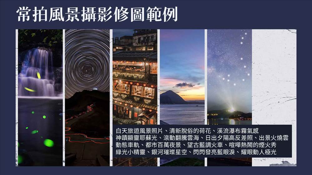這門課主要會有幾種近幾年我在教風景課會用到的軟體,軟體使用其實跟鏡頭的道理很像,不同的題材會運用不同的焦段或鏡頭去拍攝,軟體也是一樣,每個公司都有專精或擅長的領域,學起來面對不同的題材就能拍的得心應手。