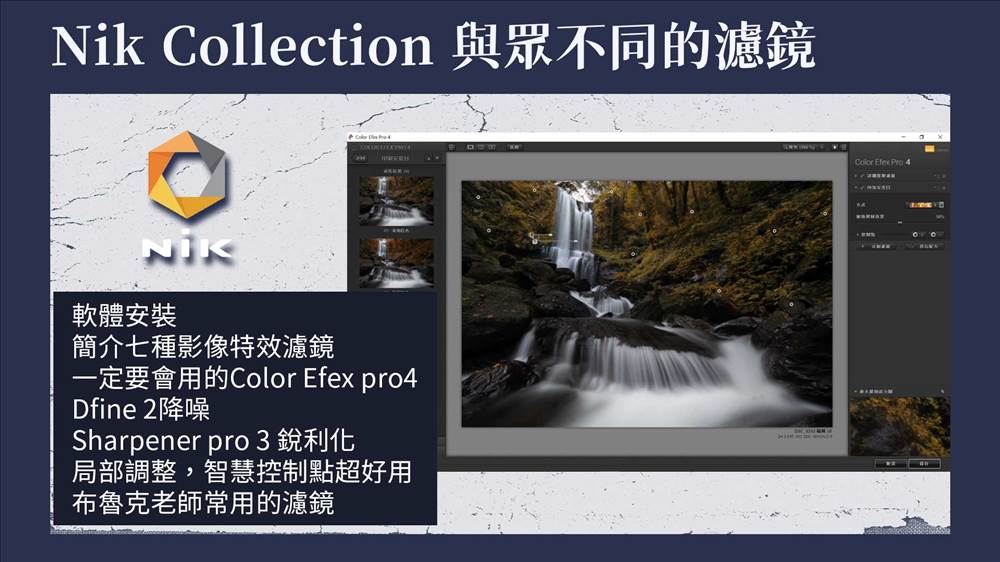 Nik collection是一套簡單但是效果很強的濾鏡,當初是Google提供的免費軟體,後來再被併購之後就變成收費軟體,幸好現在在網路上還能找到當初的插件,這麼強大又能找到的免費外掛,怎麼能不用呢?!